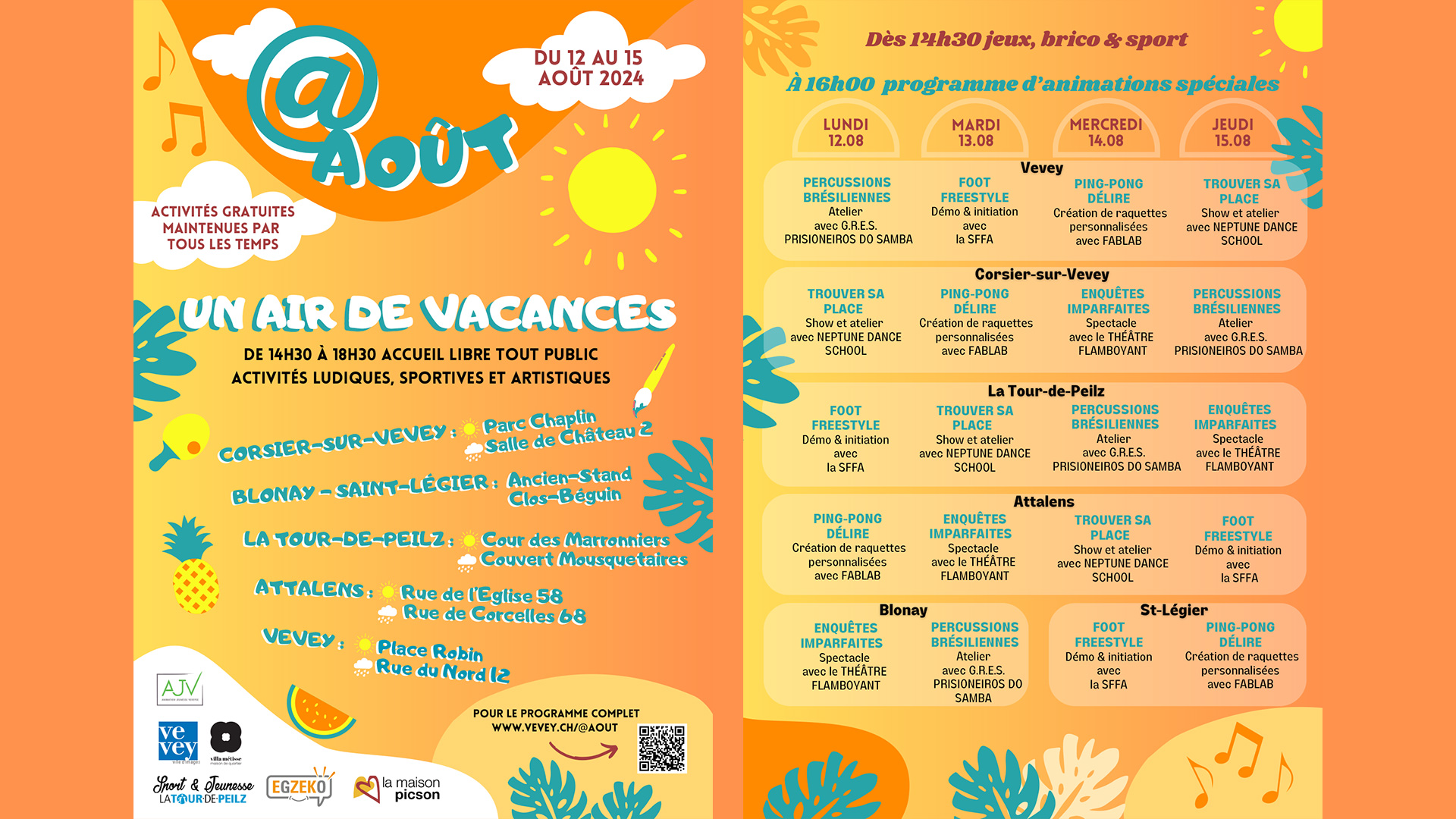 ORGANISATION : Animation Jeunesse de la Veveyse Attalens, Bossonens, Châtel-St-Denis, Remaufens, Semsales et St-Martin / Egzeko Corsier, Corseau, Chardonne et Jongny / Animation jeunesse Vevey / Maison Picson Blonay et Saint-Légier / Sports & Jeunesse La Tour-de-Peilz